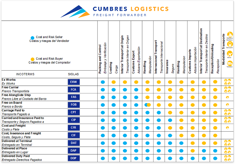 “Costo, Seguro y Flete” significa que el vendedor entrega los bienes a bordo del barco o adquiere los bienes ya entregados. El riesgo de pérdida o daño de las mercancías pasa cuando las mercancías están a bordo del buque. El vendedor debe contratar y pagar los costos y fletes necesarios para llevar las mercancías al puerto de destino designado. El vendedor también contrata una cobertura de seguro a cargo del comprador contra el riesgo de pérdida o daño de las mercancías durante el transporte. El comprador debe tener en cuenta que, según el CIF, el vendedor debe obtener un seguro sólo con una cobertura mínima. En caso de que el comprador desee tener una mayor protección de seguro, deberá acordar expresamente con el vendedor o contratar directamente un seguro adicional.